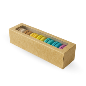 Стильне та зручне рішення для презентації й транспортування ніжних десертів. Міцний картон захищає макаронс від пошкоджень, акуратний дизайн робить таку коробочку ідеальною для кондитерських, кафе, домашніх пекарів та подарункових наборів. У ній зручно продавати, дарувати й відправляти замовлення, забезпечуючи охайний вигляд солодощів.